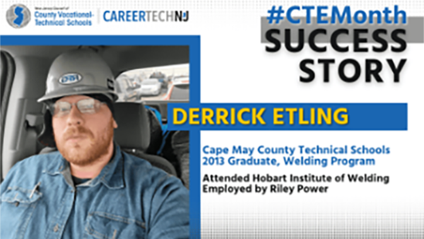 Derrick Etling, of Ocean City, said the quality of education he received at Cape May County Technical Schools (CMCTS) prepared him for a successful career as a welder.